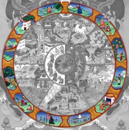 Voici les douze nidanas, les douze maillons de la coproduction conditionnée. Ils forment une série d'exemples concrets du principe bouddhique universel de la conditionnalité, en particulier lorsque ce principe est appliqué au processus de la renaissance.
